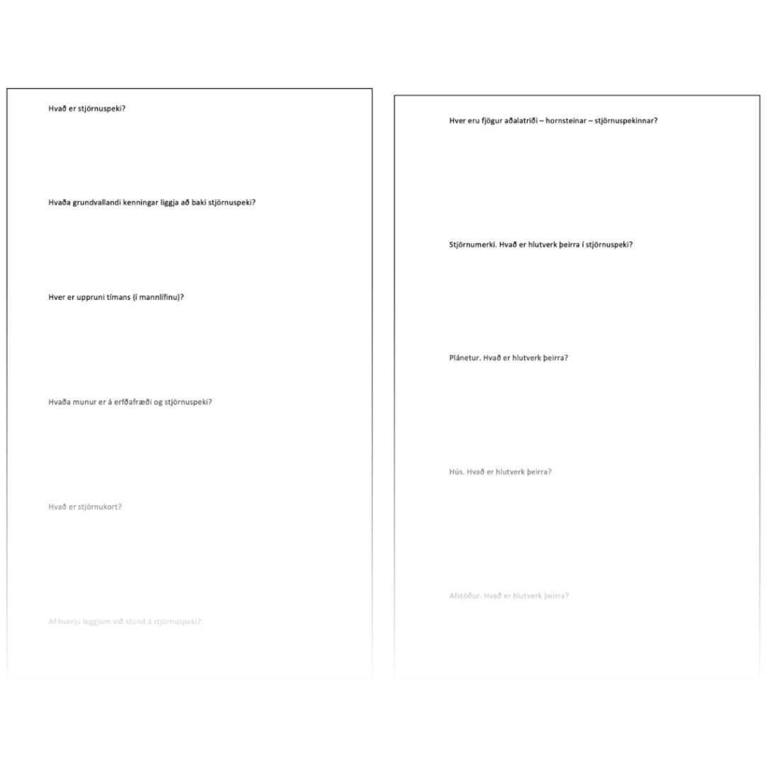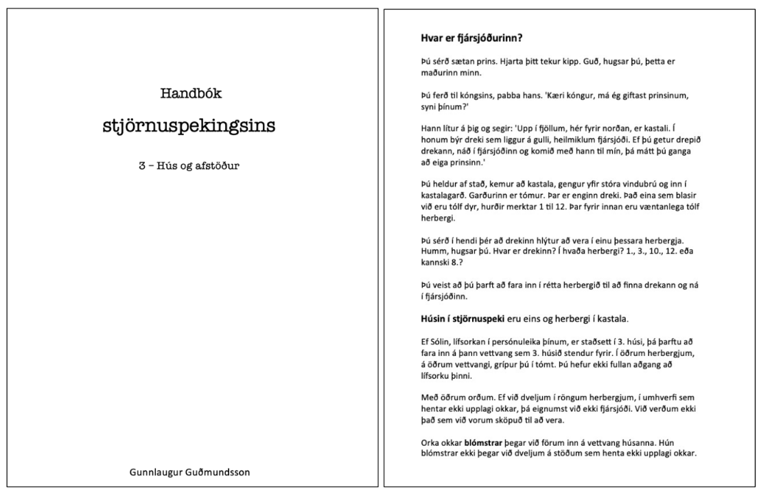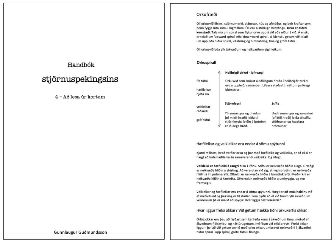 Hér fyrir neðan er sýnishorn úr þriðja hefti handbókar stjörnuspekingsins.