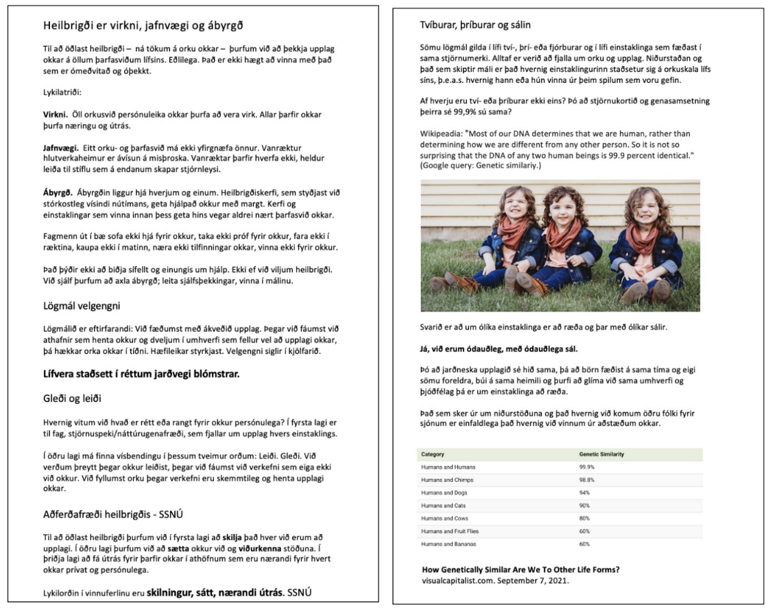 Í lok þriðja tíma er nemendum afhent handbók númer fjögur. Efni sem