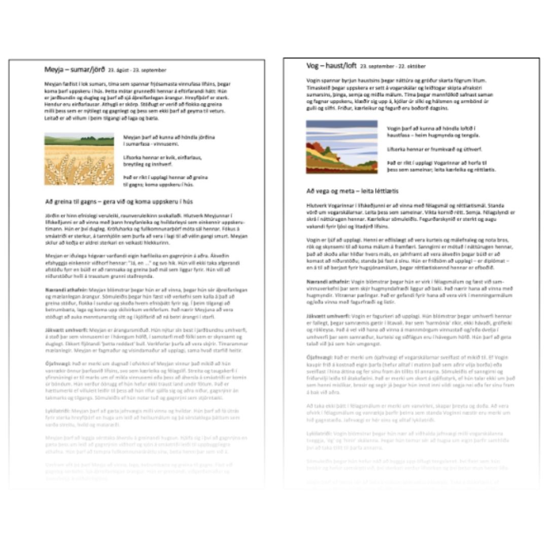 náttúrunnar, frumefnin eldur, jörð, loft og vatn, saga árstíðahringsins.